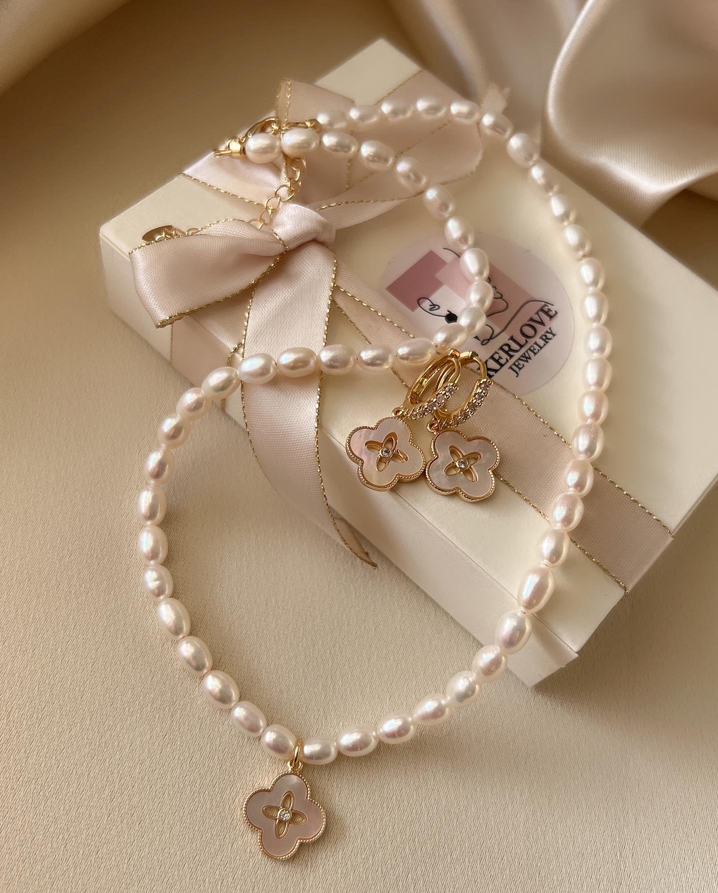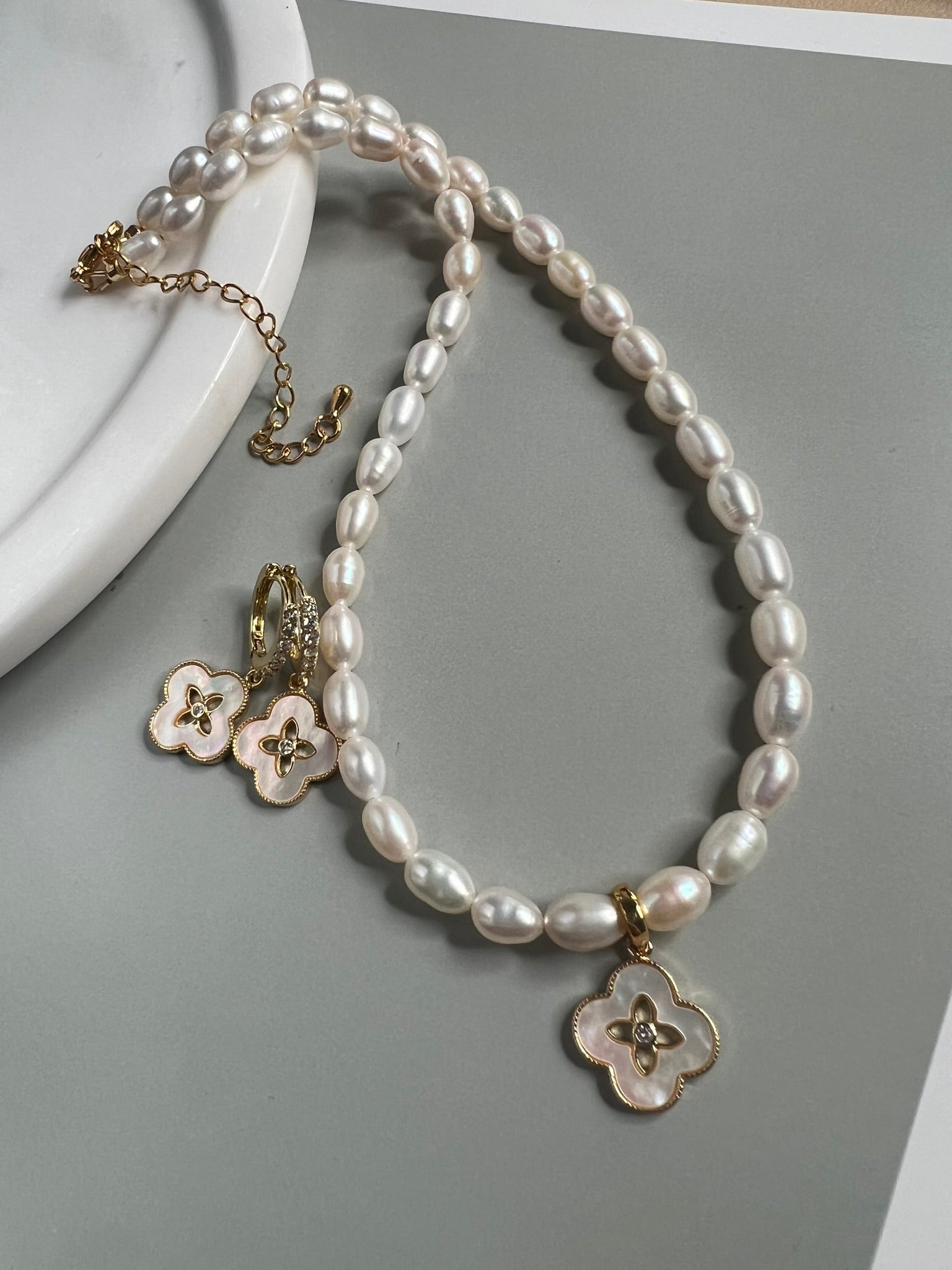 Hienostunut kaulakoru ja korvakorut aidosta helmestä ✨
