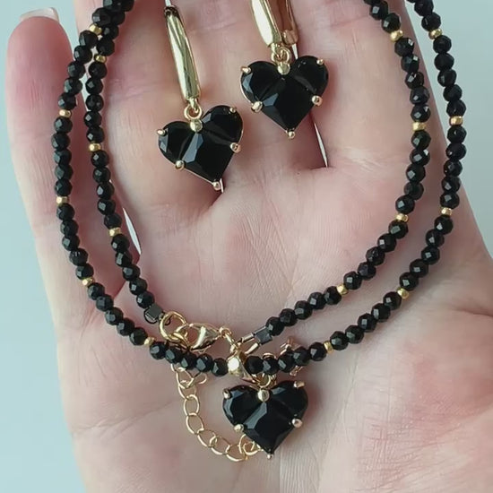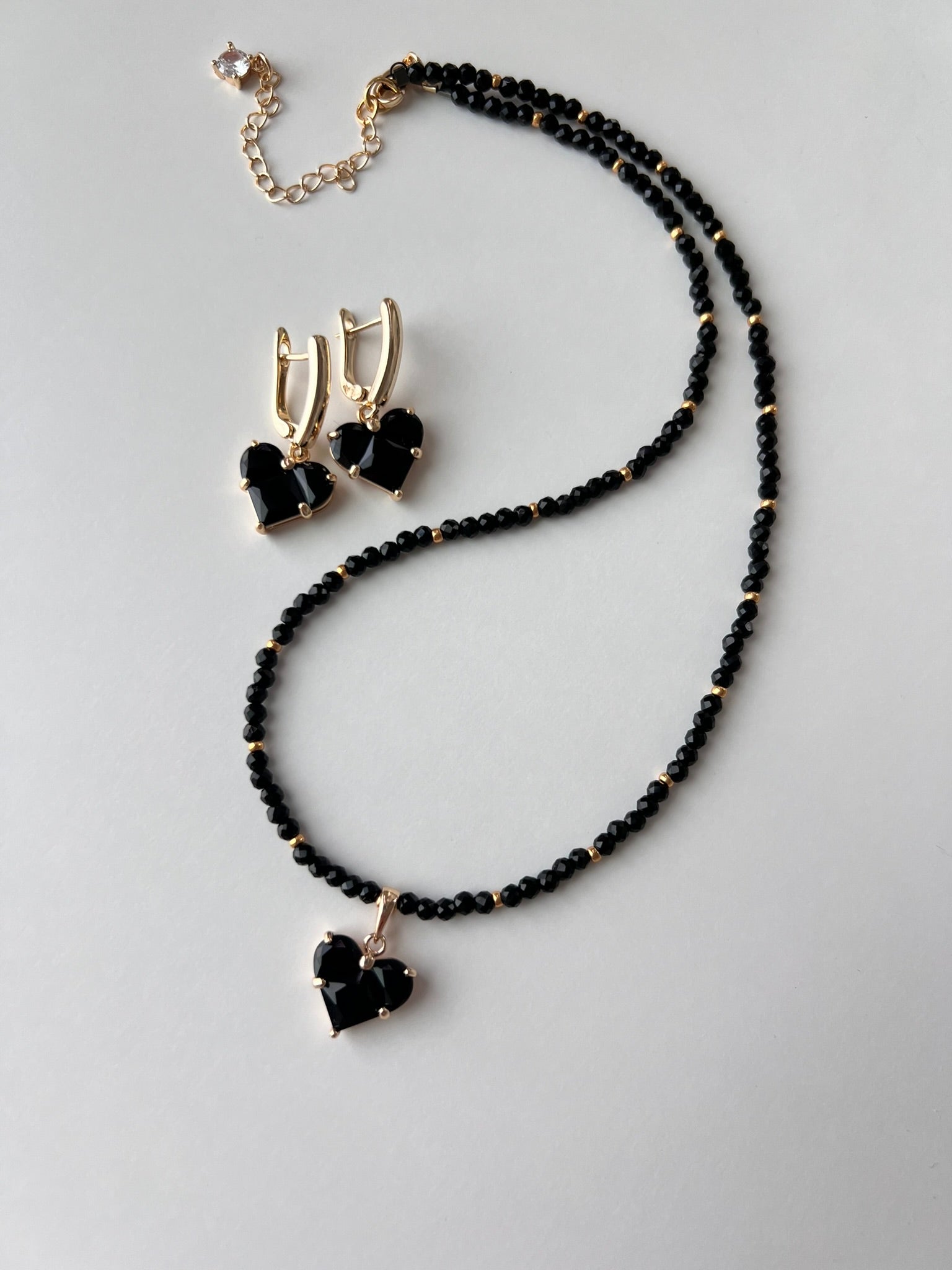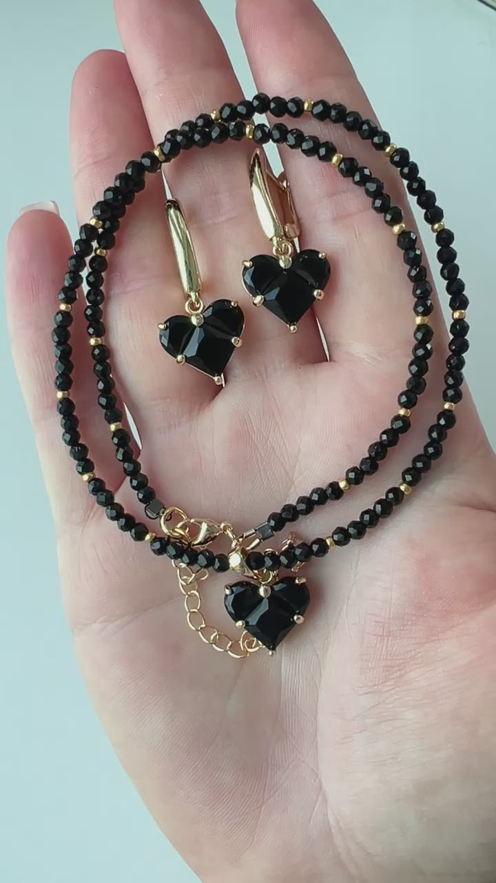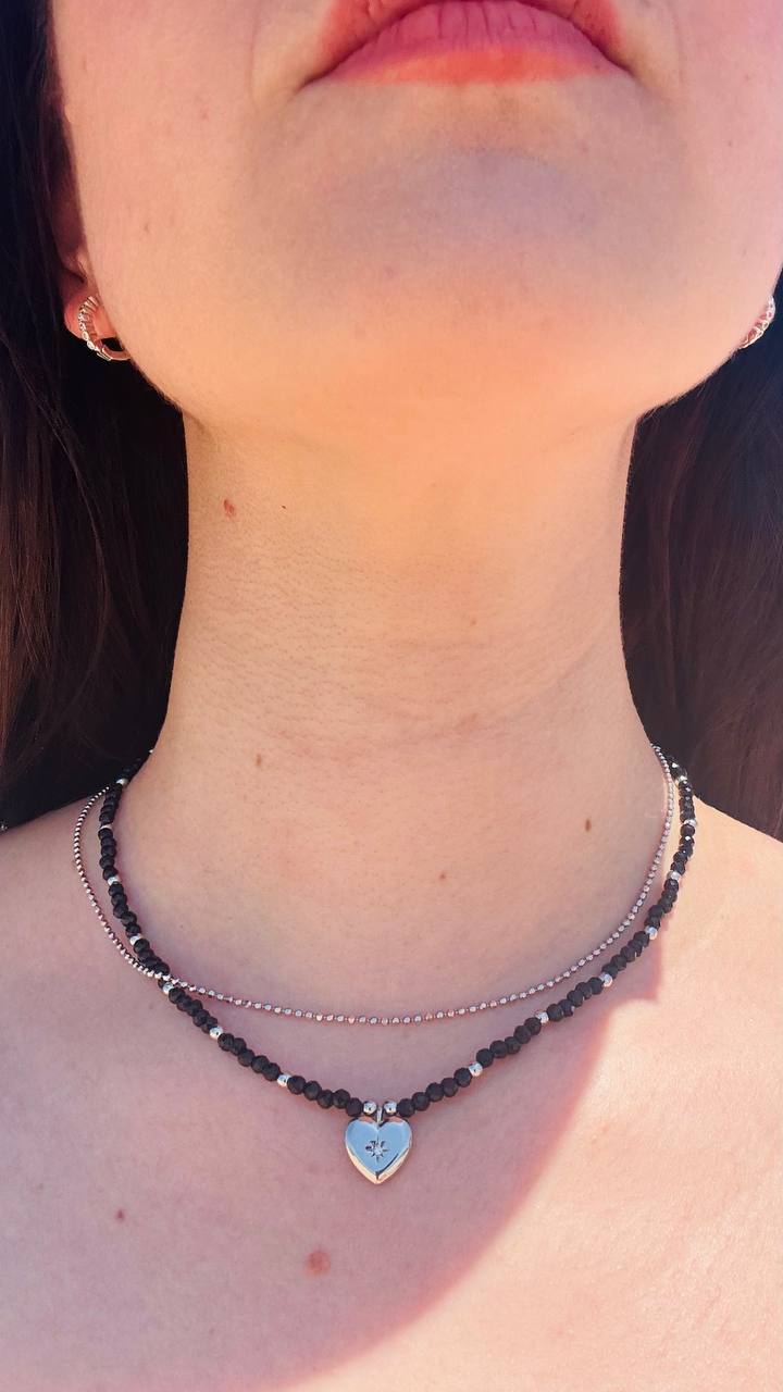 Tyylikäs mustasta luonnon spinellistä valmistettu kaulakoru ✨