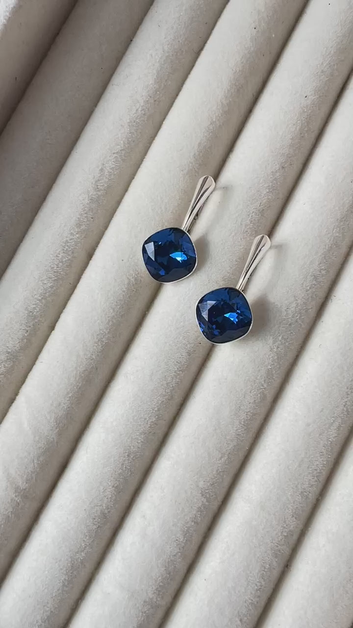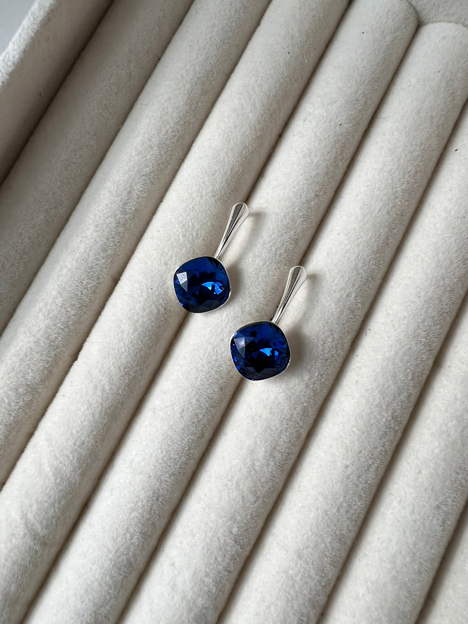 Ajattoman elegantit korvakorut, joissa säihkyvät syvänsiniset tyynyleikatut safiirit ja laadukas S925-sterlinghopea yhdistyvät hienostuneeksi kokonaisuudeksi.