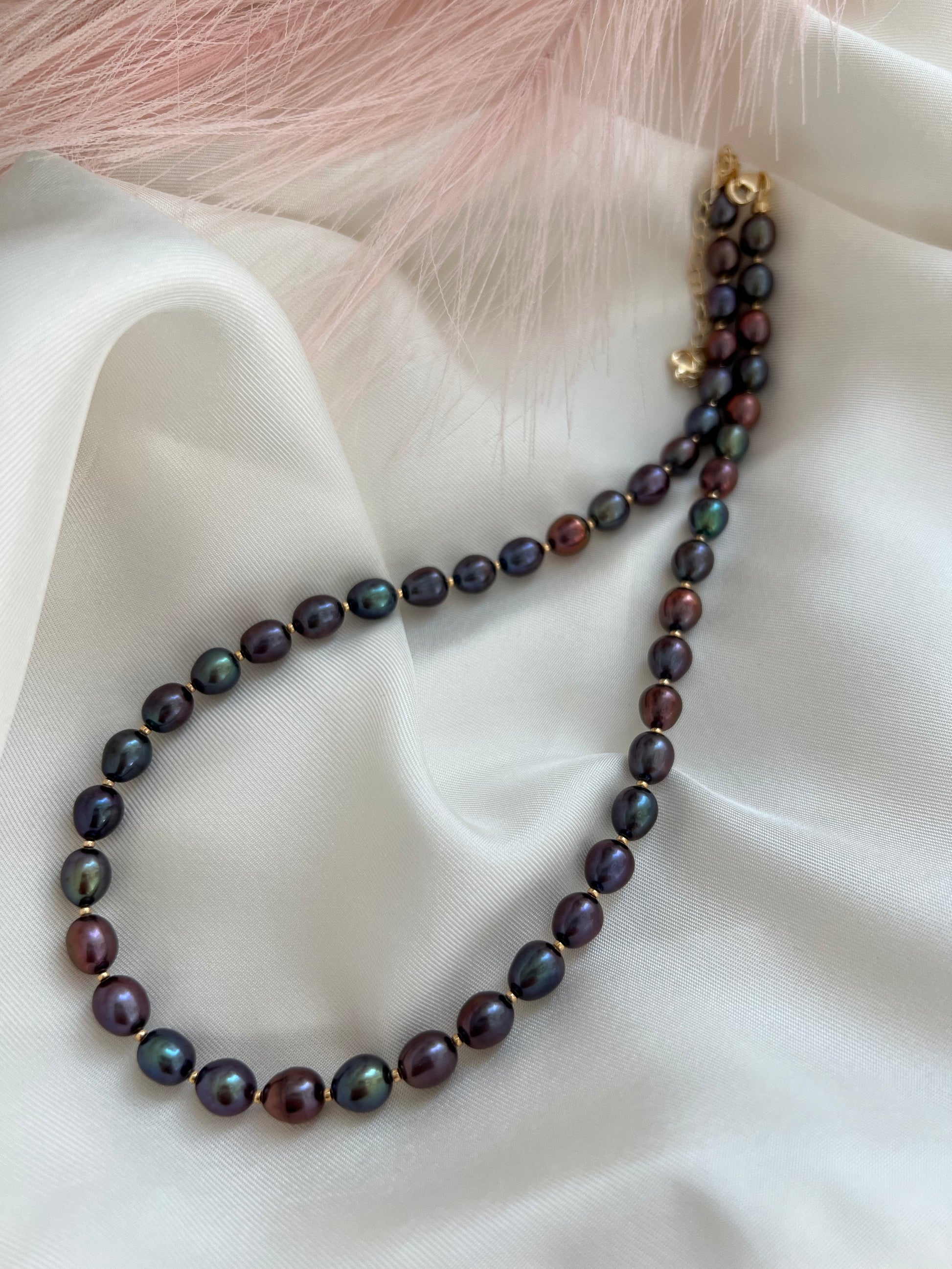 Tämä upea kaulakoru on valmistettu luonnollisista tummansini-vihreistä helmistä, joiden halkaisija on 6,5-7 mm.